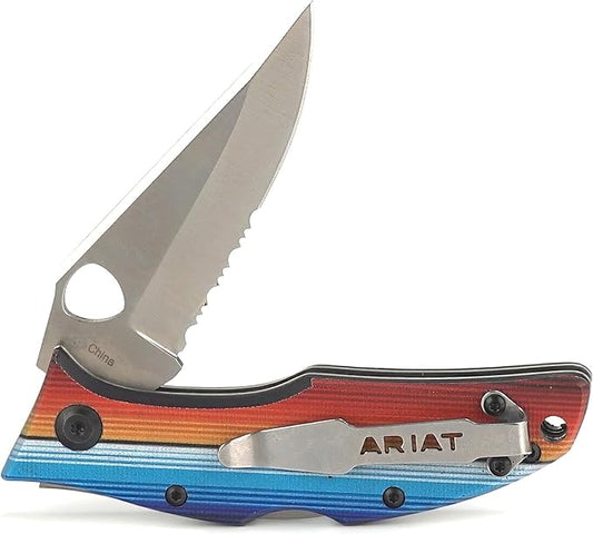 Ariat Western Knife Serrated Blade Folding Logo M Blue