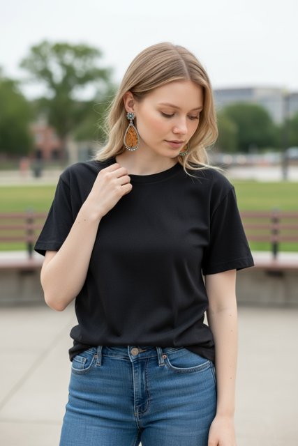 Saddle up for a wild style moment! These brown cow print earrings blend rustic charm with a pop of turquoise florals for an unexpectedly chic look. Perfect for adding personality to any outfit, whether you're channeling your inner cowgirl or just love mixing prints with flair. Lightweight and eye-catching, they're the accessory that says you don't take fashion too seriously—but you take looking fabulous very seriously.