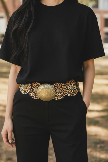 Unleash your wild side with this bold cheetah print belt, complete with a chunky chonco buckle that's ready to make a statement. Perfect for adding a fierce, fun touch to any outfit—whether you're channeling your inner big cat or just want to stand out from the crowd. This playful piece brings attitude and attitude-adjacent vibes to your wardrobe. Buckle up and let your personality roar!