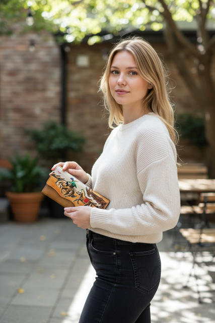 Saddle up with the Cowgirl Crest—a hand-painted leather crossbody wallet that's as bold and spirited as you are. Each piece features unique artwork celebrating Western flair, crafted from supple leather that only gets better with time. The adjustable strap keeps your essentials close while you're out conquering the day. Perfect for anyone who refuses to blend in.