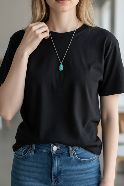 Catch the light and turn heads with this charming silver chain necklace, featuring a gorgeous turquoise droplet stone that dangles with effortless elegance. The smooth, polished turquoise brings a pop of color and natural beauty to any outfit, while the delicate silver chain keeps things refined and versatile. Perfect for layering or wearing solo, this piece strikes the ideal balance between statement-making and everyday-wearable. Let your style flow freely.