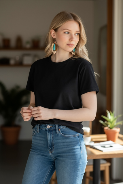 Make a bold statement with these eye-catching feathered cowprint earrings, where Western flair meets bohemian charm. Each pair features a striking rustic turquoise oval stone that adds an earthy pop of color and texture. The playful feathered design brings movement and personality to any outfit, whether you're channeling your inner cowgirl or just love mixing prints with purpose. Perfect for adding that adventurous touch to your everyday style or special occasions.