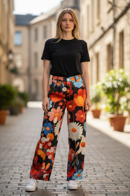 Bloom into style with these charming flower pattern pants! Featuring vibrant botanical prints that bring a garden-fresh vibe to your everyday wardrobe, they're perfect for adding a pop of color and personality to any outfit. The playful floral design makes a statement without trying too hard—ideal for those who love nature-inspired fashion with a fun twist. Comfortable and versatile, these pants work beautifully for casual outings, weekend adventures, or whenever you want to let your whimsical side shine through.