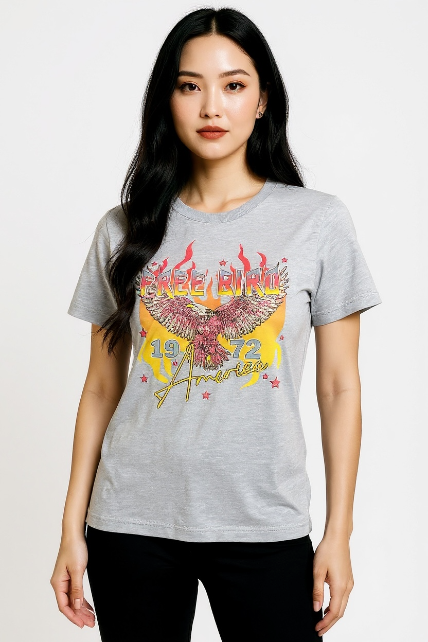 "Fly high and free with our Freebird 1972 graphic tee. Featuring a majestic eagle, this tee will make you feel unstoppable. Embrace your inner adventurer and let your sense of freedom soar with this quirky and playful shirt.