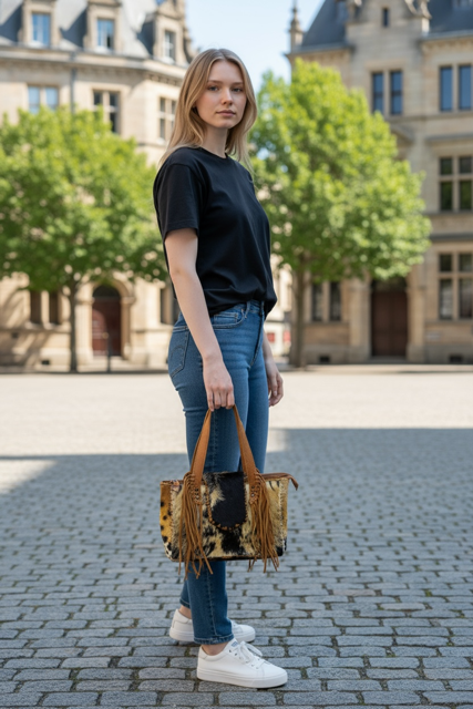 Saddle up with the Iron Spur, a bold leather purse that kicks up the fun with vibrant yellow cowhide fringe. This eye-catching accessory combines rich leather craftsmanship with playful movement, perfect for adding a spirited touch to any outfit. Whether you're heading to town or the trail, the swaying fringe keeps things lively while sturdy leather keeps your essentials secure. A little wild, a whole lot of style.
