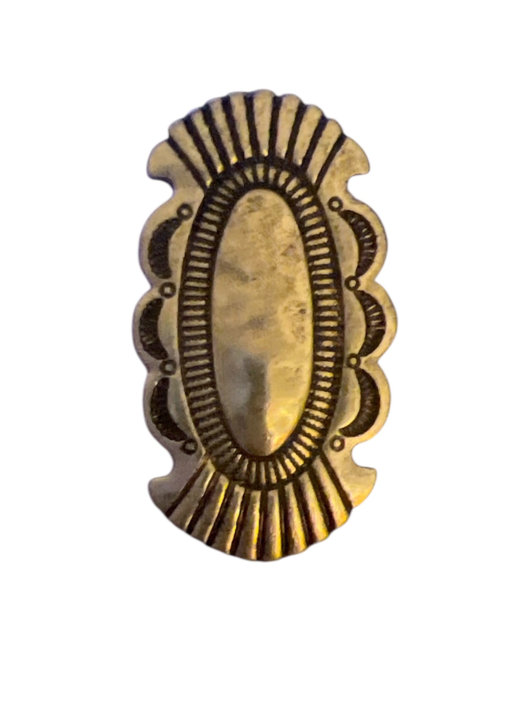 Make a bold statement with this large Silver Concho Ring. Featuring a classic Western style and crafted from high-quality silver, this ring is a must-have accessory for those who appreciate fine craftsmanship.