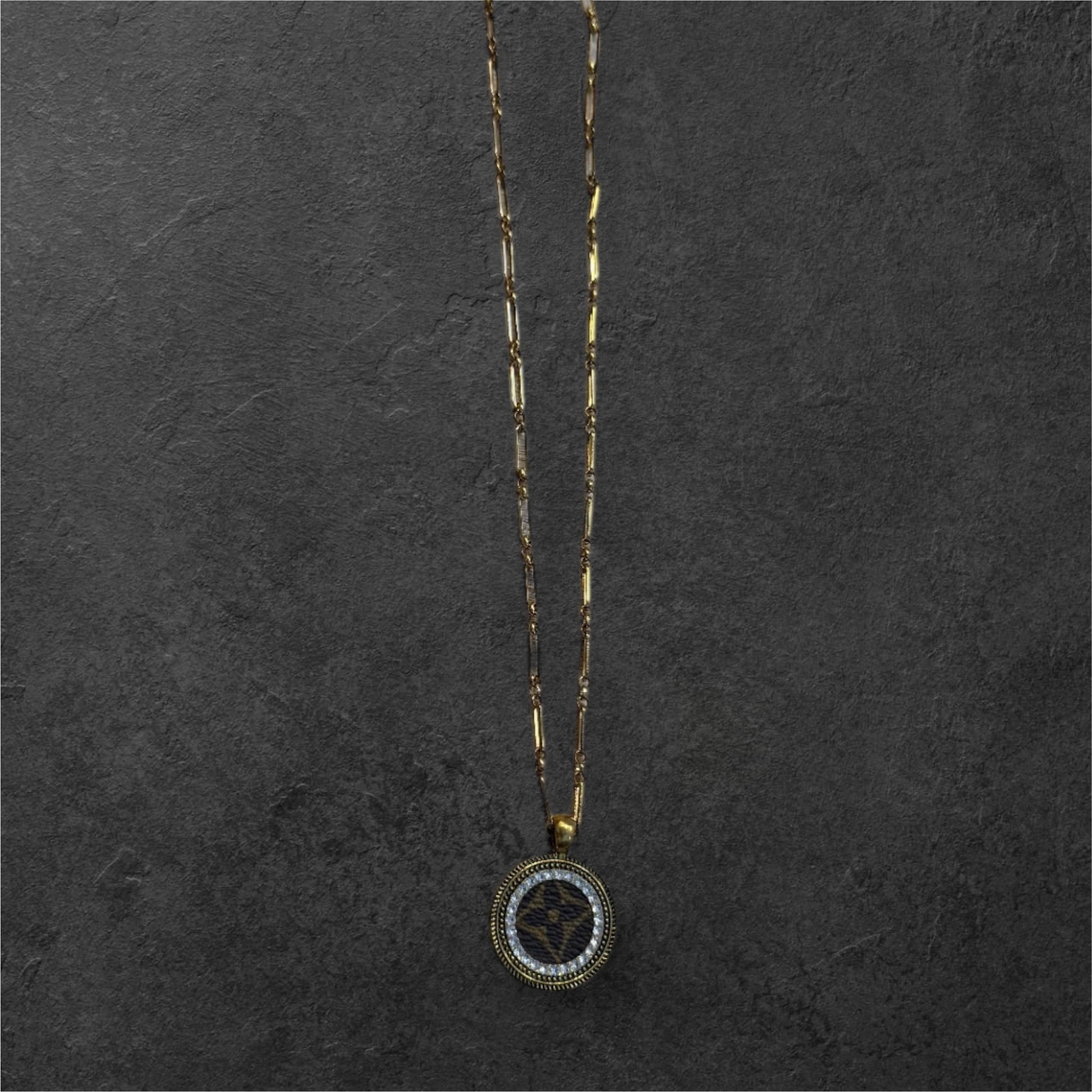 Long medallion upcycled Louis Vuitton necklace