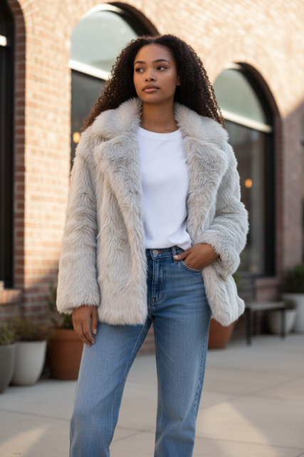 Wrap yourself in cozy luxury with the Prairie Frost, an off-white faux fur jacket that's equal parts soft and statement-making. This plush layer brings instant warmth and texture to any outfit, whether you're channeling vintage glamour or modern edge. Perfect for those moments when you want to feel fabulous while staying toasty. Slip it on and let your vibe do the talking.
