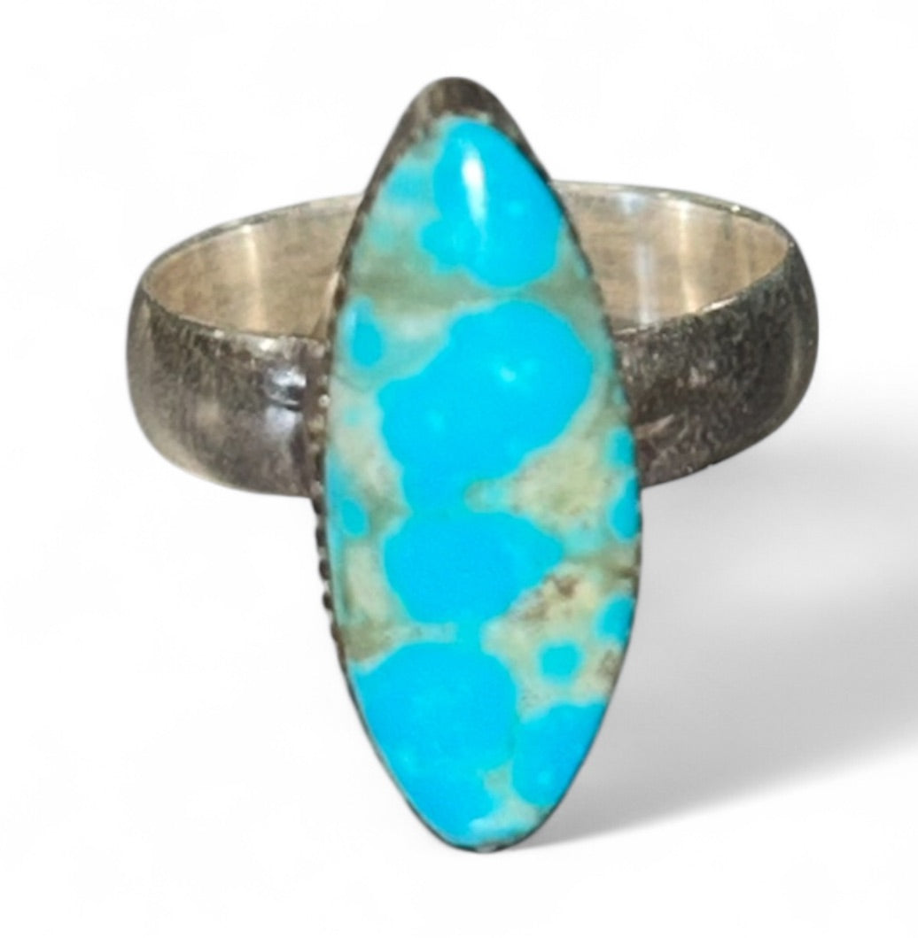 The River ring features a size 4 sterling silver band paired with a genuine turquoise stone, creating a striking blend of durability and natural beauty. Its authentic turquoise centerpiece adds a unique touch of vibrant color, making this ring a timeless addition to any jewelry collection. Perfect for those who appreciate handcrafted elegance with a meaningful, earthy charm.