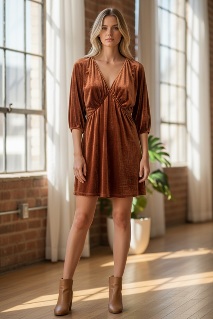 Embrace your inner sass with this rustic velvet dress that's equal parts cheeky and charming. Crafted from sumptuous velvet fabric, it drapes beautifully while delivering that cozy-luxe vibe perfect for nights out or special occasions. The rich texture catches the light just right, making you feel effortlessly put-together without trying too hard. Whether you're channeling vintage glamour or modern edge, this dress lets your personality shine through with a wink and a smile.