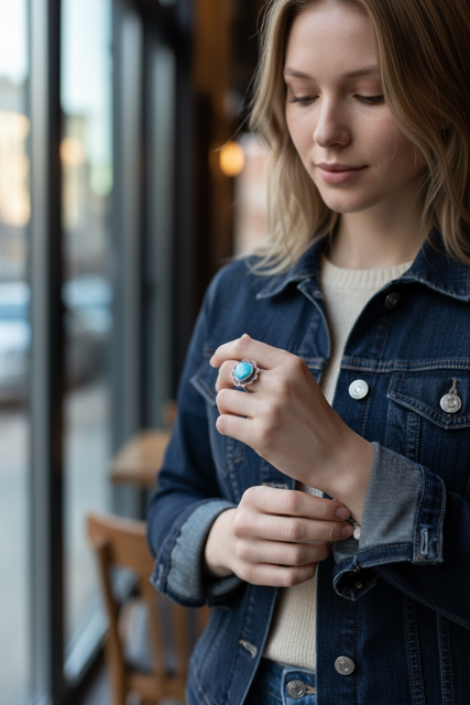 Catch the light and turn heads with this charming silver oval band ring featuring a stunning round turquoise stone. The smooth, polished silver band pairs beautifully with the vibrant turquoise centerpiece, creating a look that's both timeless and full of personality. Perfect for everyday wear or special occasions, this ring brings a pop of color and sparkle to any outfit. A versatile piece that feels like a little luxury on your finger.