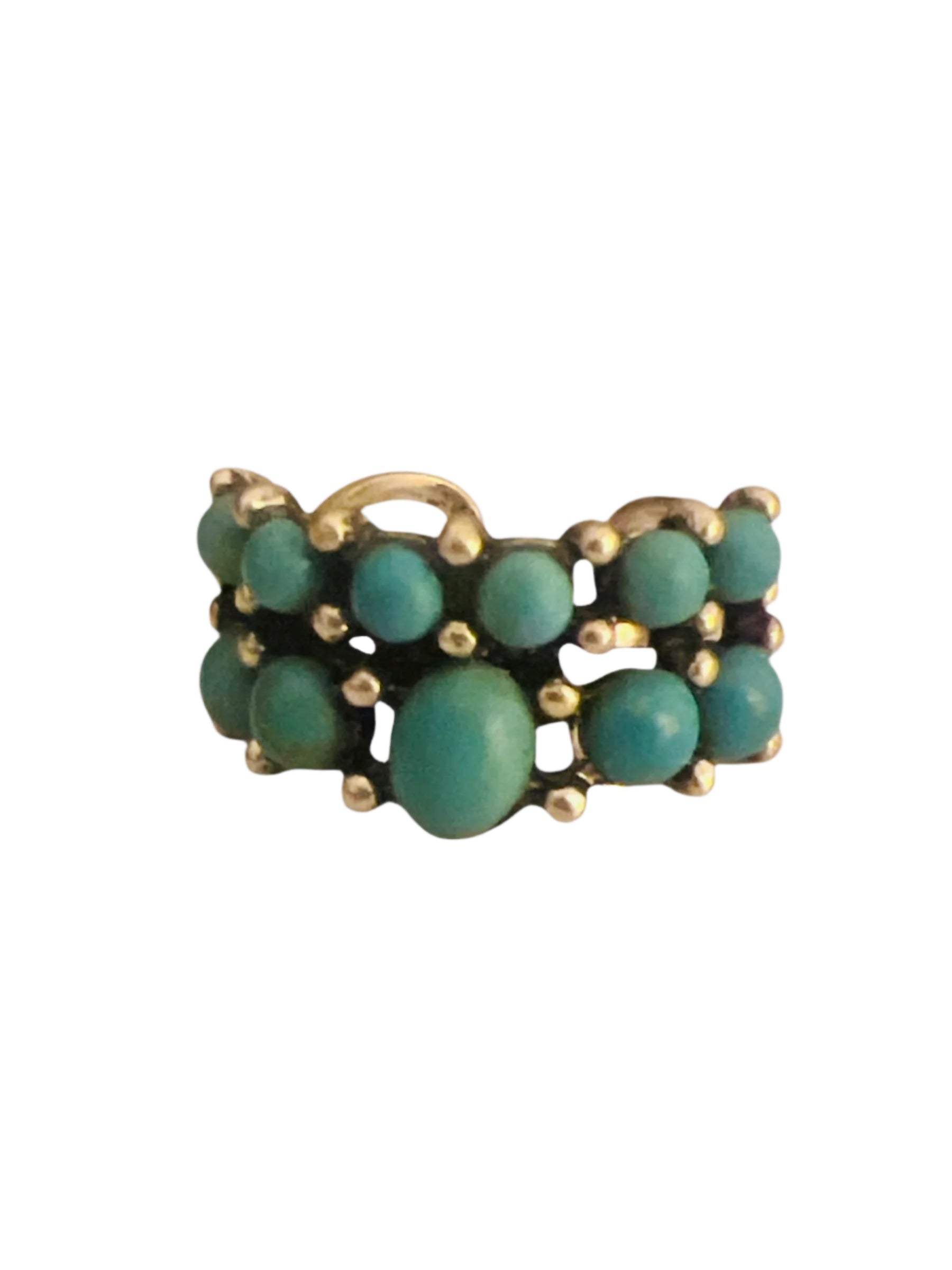 Elevate your style with our stunning stacked turquoise stone ring. This elegant accessory features a mesmerizing design that is sure to make a statement. Shop now for a touch of sophistication!
