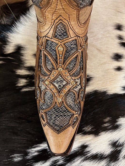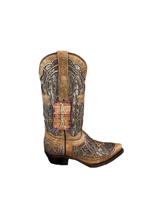 Introducing The Snake Boots by Wildflowers. Keep your feet safe and stylish with these quirky and comfortable boots. Perfect for any outdoor adventure, these boots are made to withstand the wild. Say goodbye to boring footwear and hello to adventure with The Snake Boots.